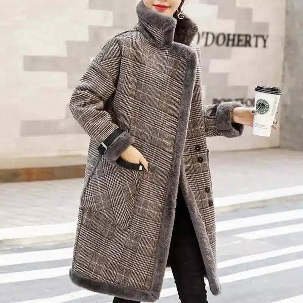 Temperamento coreano più velluto spesso cappotto di lana di media lunghezza