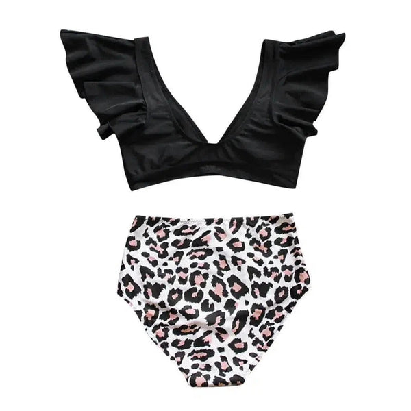 Costume da bagno leopardato con spacco a vita alta e set due pezzi