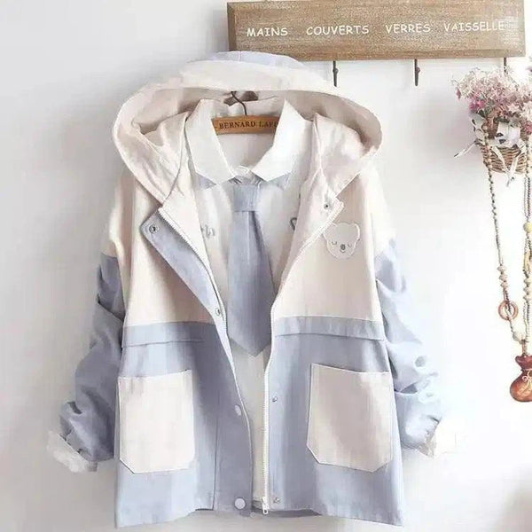 - Dettagli del design: Colletto classico con cappuccio Dettagli del design: Motivo a blocchi di colore, tasche frontali, ricamo di un orso sul petto .
