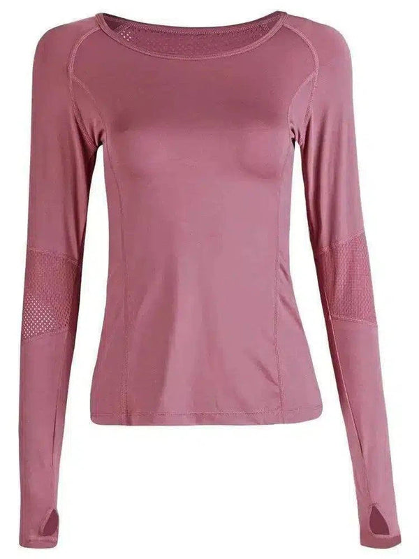Top atletico a maniche lunghe da donna con pannelli in rete