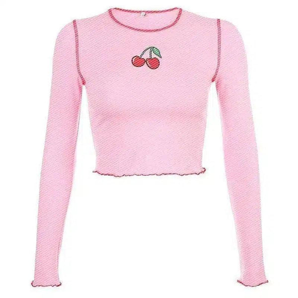 Crop Top a maniche lunghe da donna con design a ciliegia