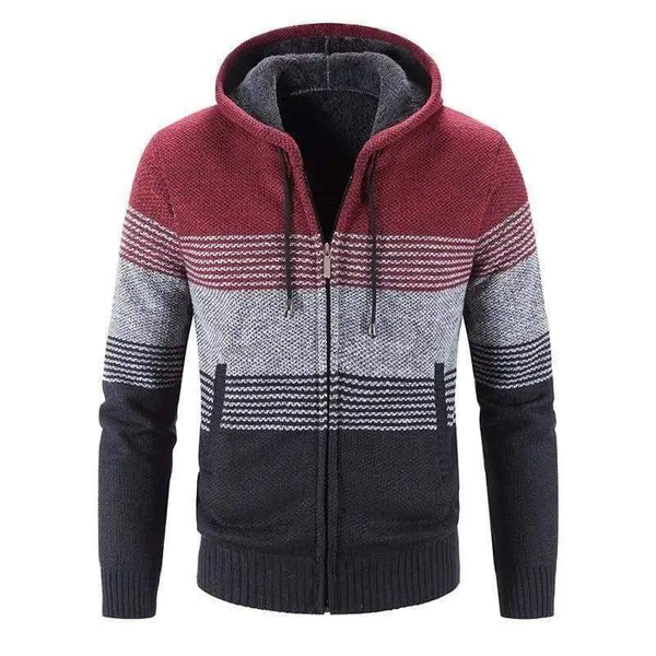 Uomo con cappuccio Cappotto a righe Cardigan Maschio Cerniera spessa Lana