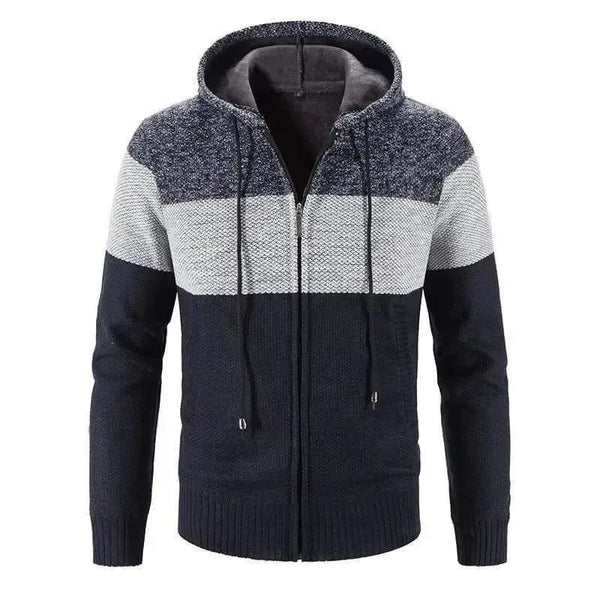 Uomo Maglione Maglioni di lana con cerniera spessa con cappuccio Cappotto a righe