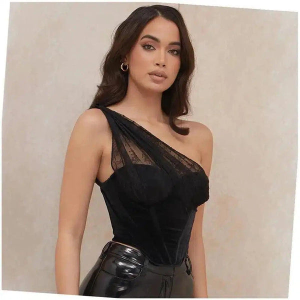 Top body monospalla in pizzo