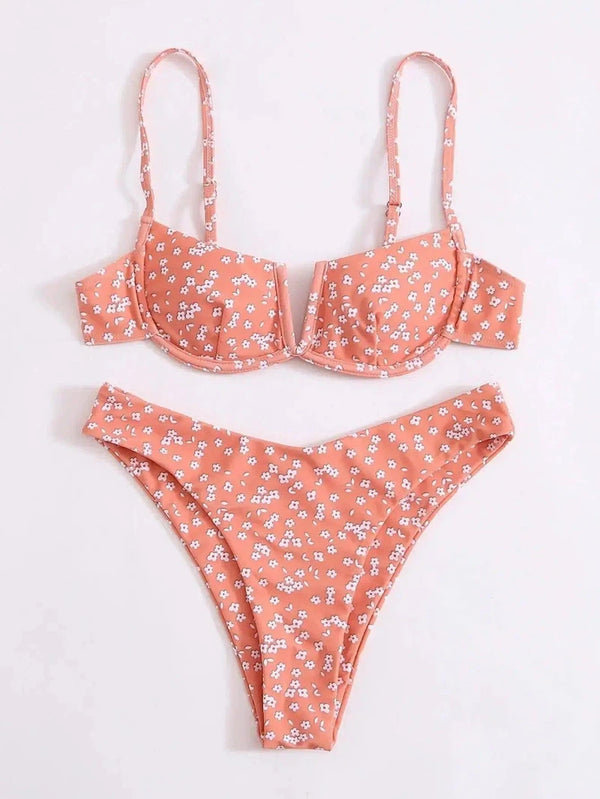 - Tipo: Costume da bagno bikini Disegno: Piccolo motivo floreale