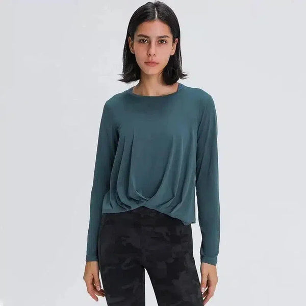 Camicetta da donna con maniche lunghe drappeggiate per il lavoro