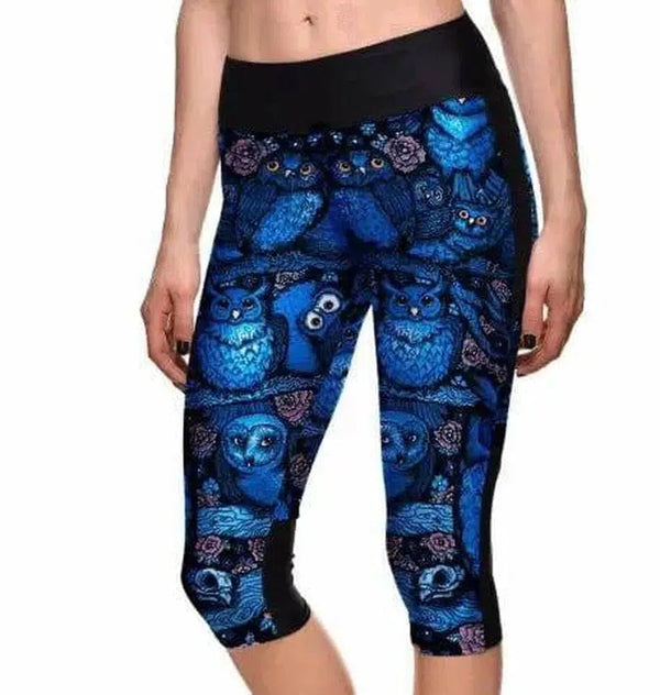 - Disegno: Forma aderente con comoda cintura in vita . Design: Stampa vivace di gufi nei toni del blu, perfetta per un abbigliamento casual o attivo.