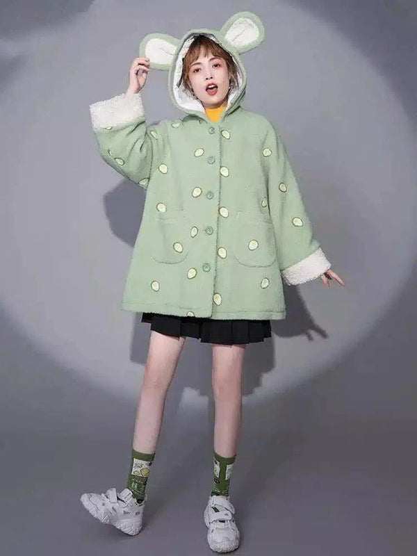 - Tipo di indumento: cappotto con cappuccio dal design giocoso