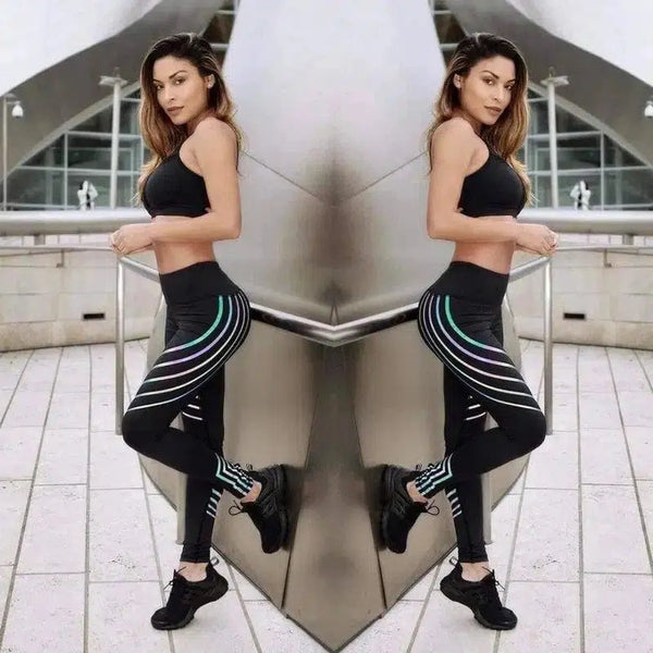 Leggings sportivi yoga skinny a vita alta stampati al laser