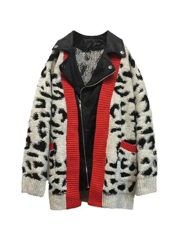 Giacca in pelle e pelliccia ecologica con stampa leopardo
