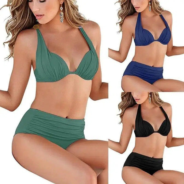 Bikini con ferretto increspato e costume da bagno a vita alta