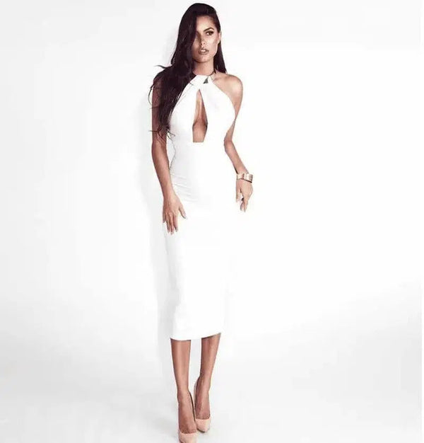 abito appeso collo nightclub borsa anca gonna midi vestito