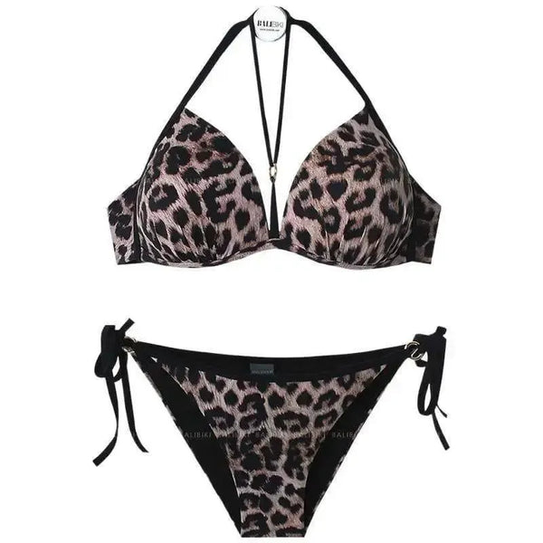 Descrizione del prodotto: Bikini Leopardo Tre Punte Seno Piccolo Raccolto