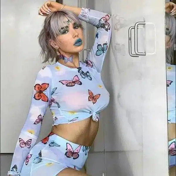 T-shirt a maniche lunghe con farfalla stampata in prospettiva