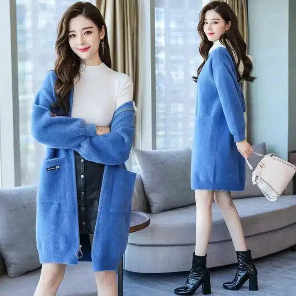 Vestito cardigan in maglia a maniche lunghe da donna