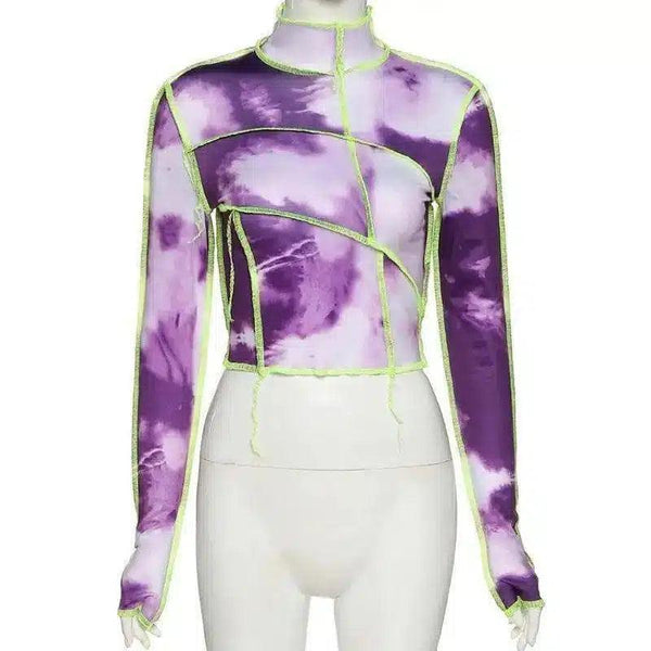 - Design: Stile aderente con dettagli regolabili per un look personalizzato. Design: Accattivante motivo tie-dye in viola con finiture a contrasto
