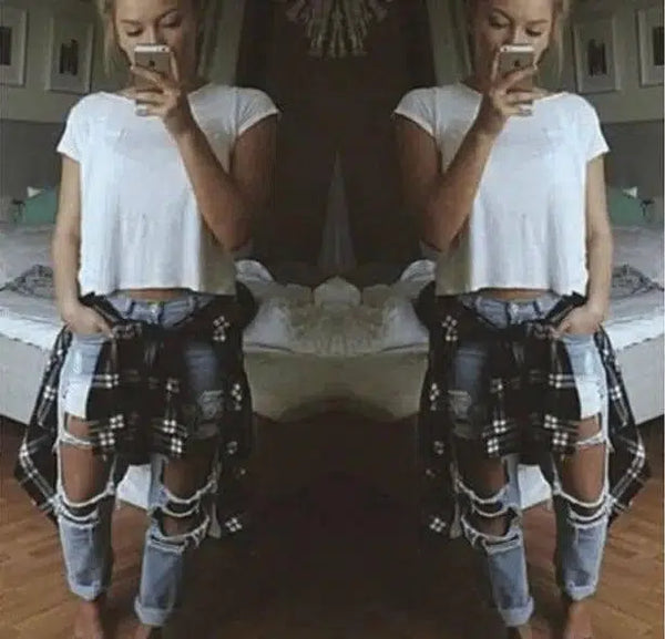 - Stile: Jeans dritti di tendenza con un moderno design a buchi