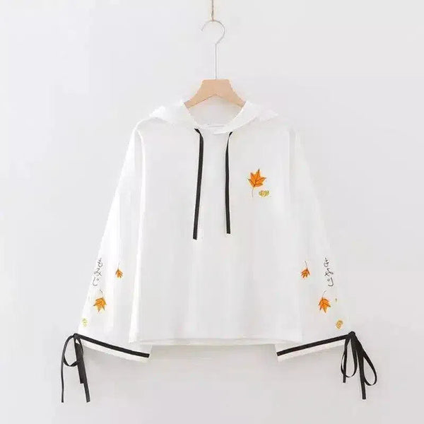- Dettagli di design: Motivo di foglie d'autunno ricamate sulle maniche e sul petto .