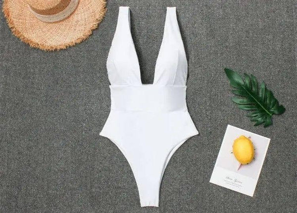 Monopezzo con scollo a V, schiena scoperta e vita alta per le donne
