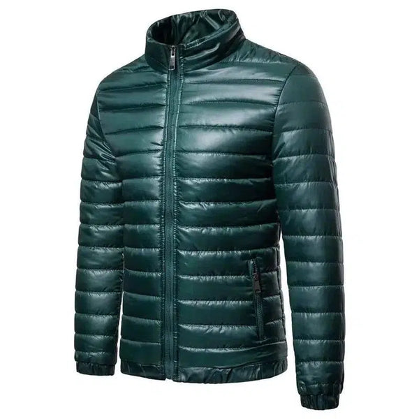 Piumino da uomo in cotone tinta unita con colletto in piedi