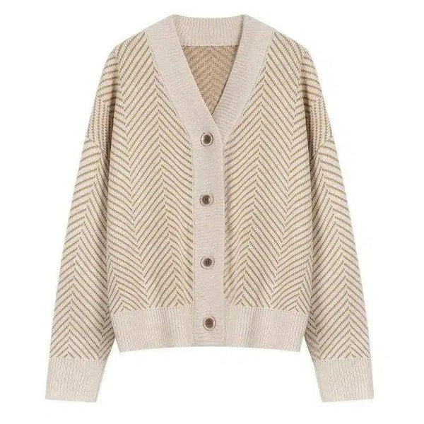Cardigan in maglia letteraria con scollo a V e strisce a diamante