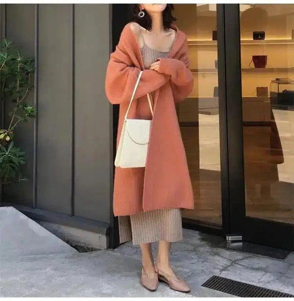 Caldo cappotto lungo e abito in maglia da donna Combo