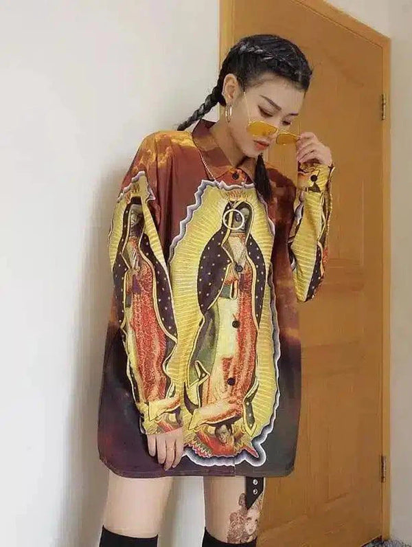 Camicia Harajuku con stampa digitale della Vergine Maria