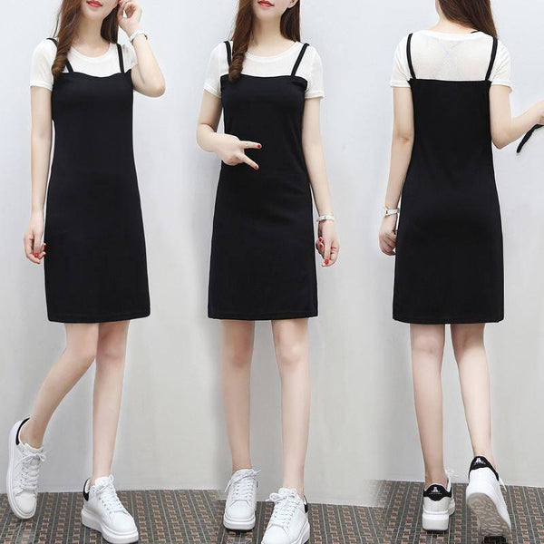Manica corta metà lungo falso due pezzi bretella abito estate