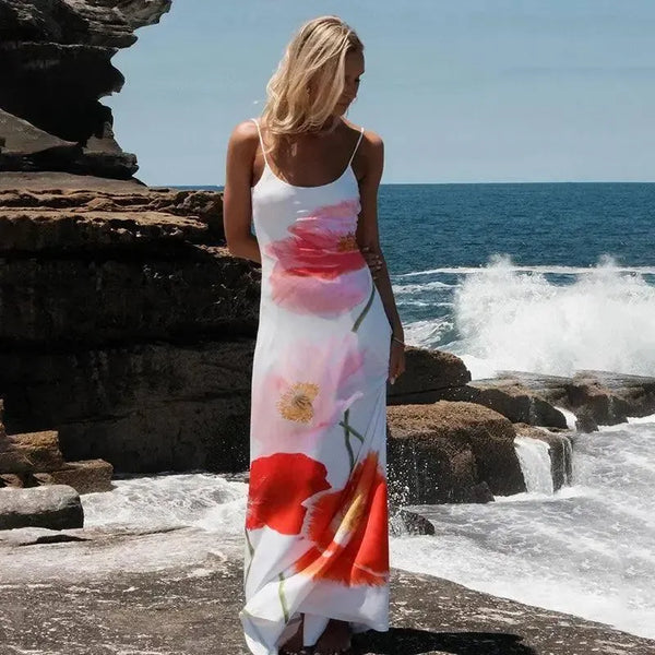 Abito maxi con scollo all'americana stampato - Abbigliamento estivo per feste in spiaggia