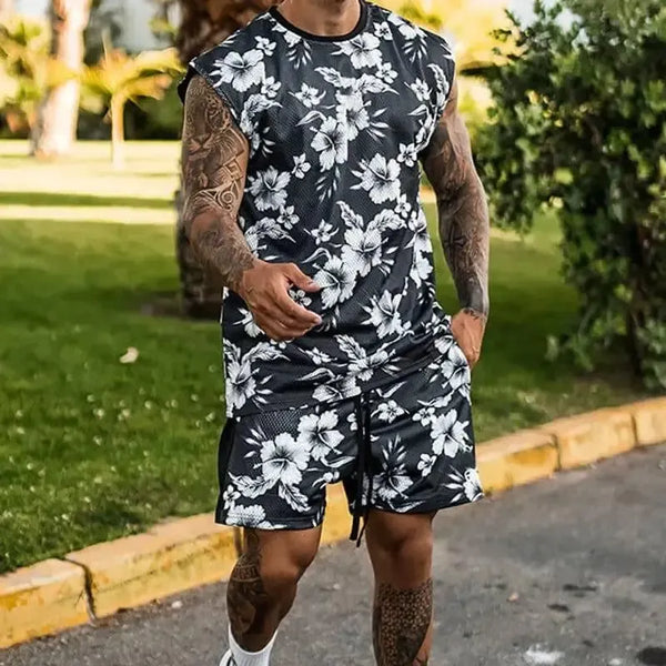 Moda maschile Pantaloni ad asciugatura rapida Camicia da spiaggia due pezzi