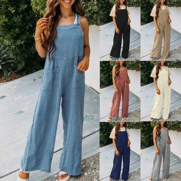 Moda Tuta a collo quadrato con tasche Primavera Estate Casual Tinta Unita Tuta Allentata Abbigliamento Donna