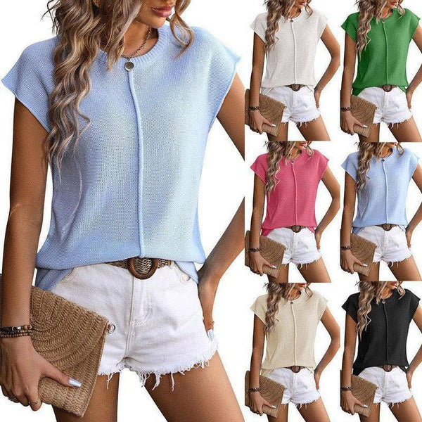 Nuovo Top a maniche corte a girocollo lavorato a maglia Estate Casual Loose