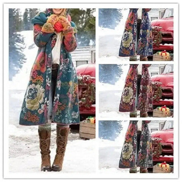 Donna stile Court stampato a metà lunghezza con cappuccio spesso