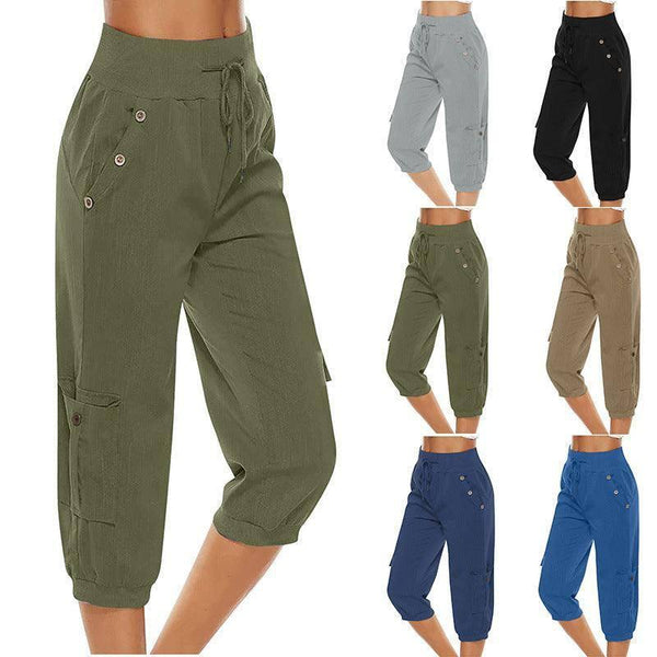 Pantaloni cropped da donna Cotone Lino Cargo Pocket Casual Pants Blu Zaffiro / 2XL