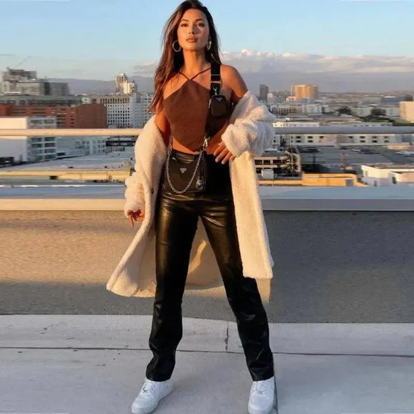 Pantaloni in pelle elasticizzati Pantaloni in pelle PU casual da donna