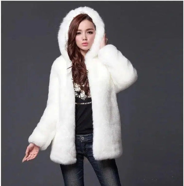 Cappotto con cappuccio da donna in pelliccia sintetica