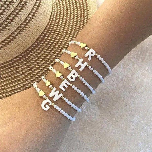 26 Lettere Bianco Conchiglia Perline Bracciale Donne Metallo Amore Design Bracciale Gioielli
