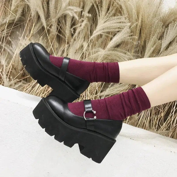 Descrizione del prodotto: Scarpe con fibbia rotonda e piattaforma retrò