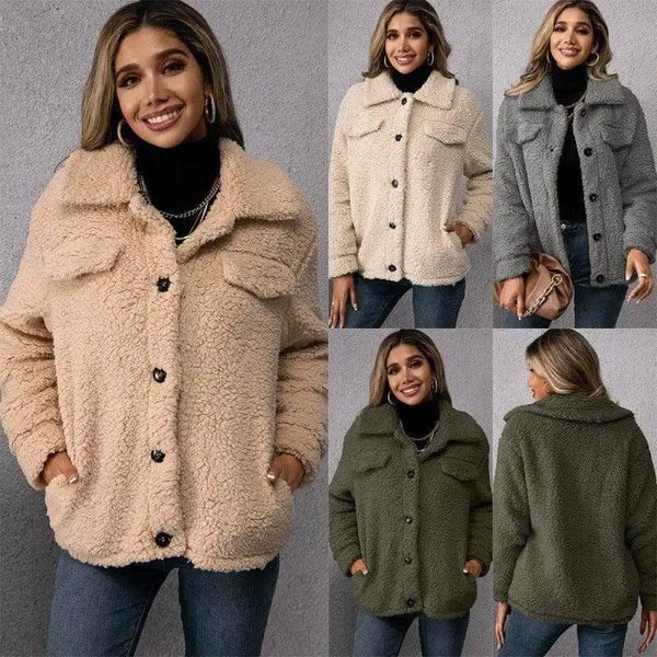 Giacca casual allentata con risvolto in peluche Cappotto in pile di agnello