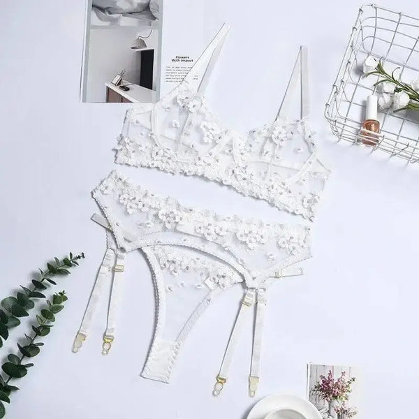 Lingerie Donna Anello in acciaio ricamato in tre pezzi