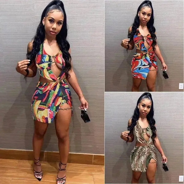 Slip Print Split Bikini per le donne in costume da bagno lavorato a maglia