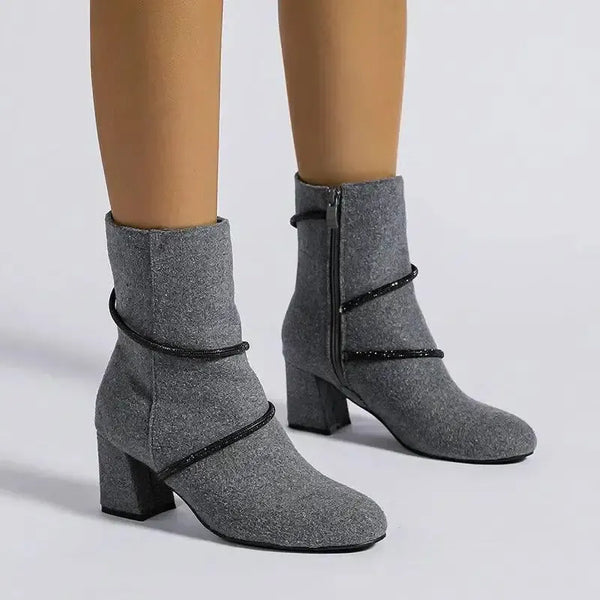 Stivali a tacco medio con catena di strass Scarpe di design per