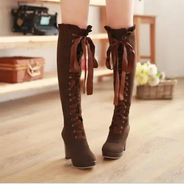 Descrizione del prodotto: Stivali alti con tacchi a spillo in velluto per donne