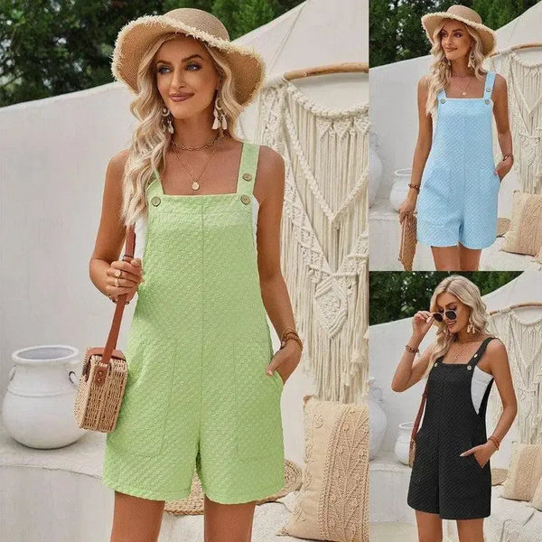 Sweet Waffle Jumpsuit Girls Summer Sleeveless Button Design Straight Solid Color Tuta Fashion Womens Clothing
