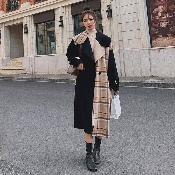 Temperamento Pendolare Cappotto di lana tutto abbinato a contrasto