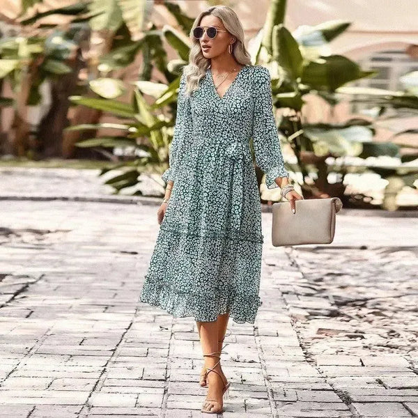 Temperamento Elegante scollo a V 34 manica Tie-shoulder Floreale