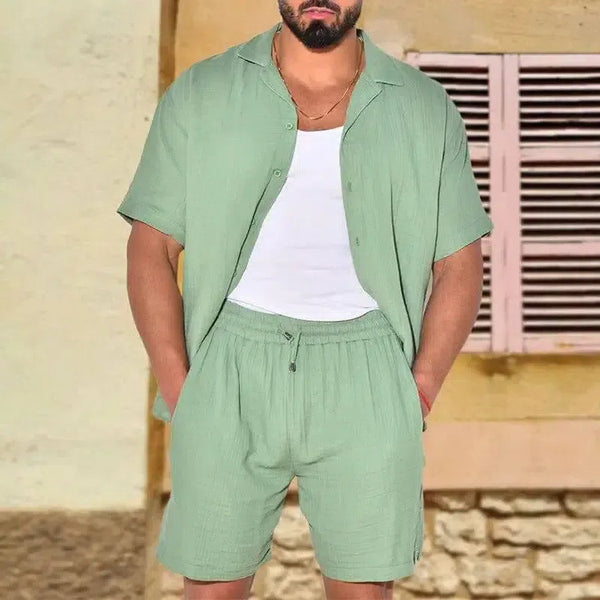 Abito da uomo in due pezzi in cotone e lino elasticizzato e sciolto